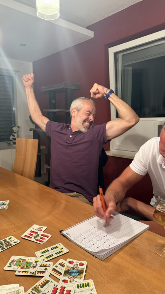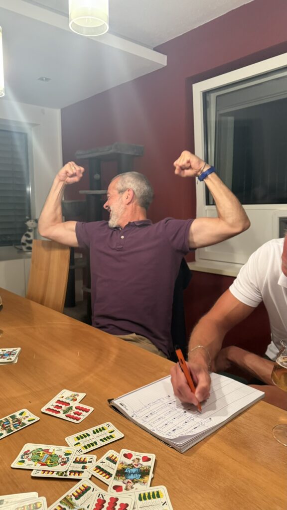 In der 4. Runde hatte Lue einen Aussetzer und verlor gleich 4x was eventuell auch dem Alkoholkonsum geschuldet war, Schließlich spielte der Mathse den Taxler.. Lue wird sich nicht mehr von dieser Krise erholen wie wir später sehen werden. Dafür spielte der Taxler (2. Stodinger) groß auf und nutze die Gelegenheit um die zechenden Mitspielern eins auszuwischen. Welch Hinterlistiger „Mensch“