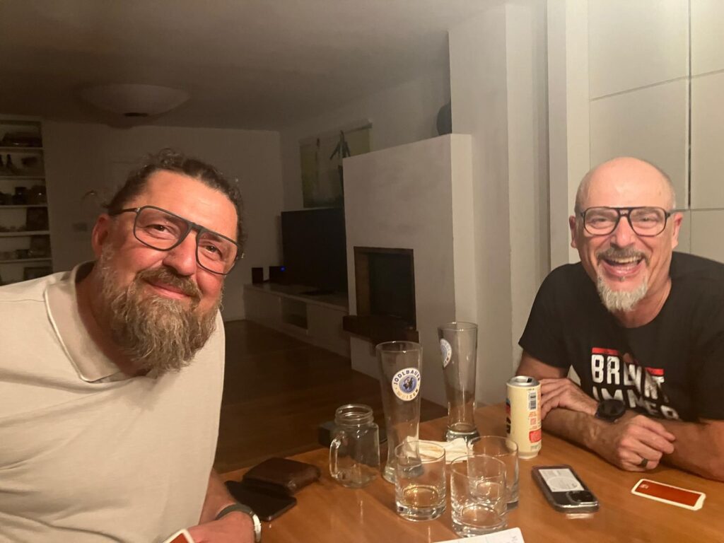 Andi stieg etwas später auf Wasser um (ein seltenes Bild) Lue blieb wie gewohnt beim Bier