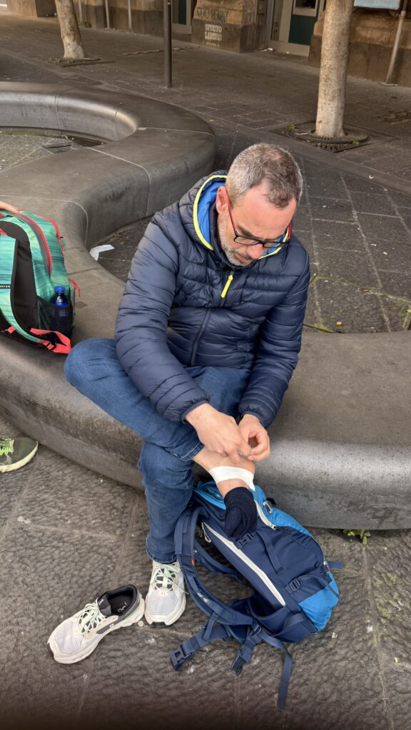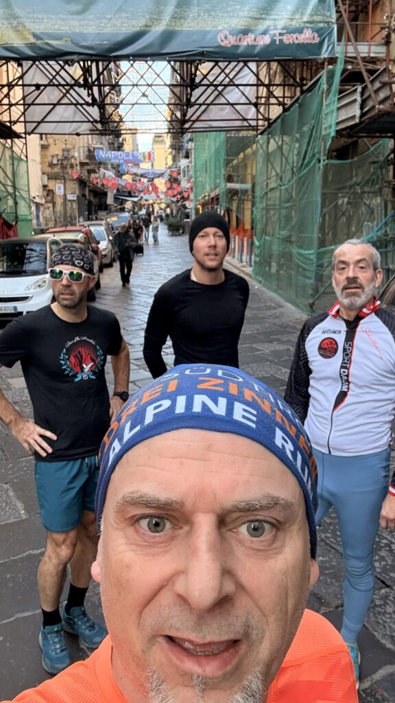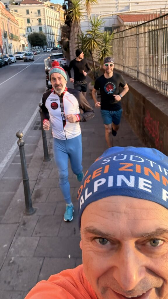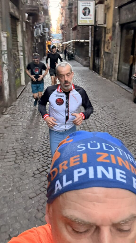 Anfangs waren die laufenden Trotteln noch guter Dinge, Kilometer für Kilometer wirkte der Gesichtsausdruck allerdings angestrengter.. Auch Mathse Knie wirkte Angestrengt. Schließlich liefen die Idioten über 10Km durch Neapel bevor es hieß Zusammenpacken und Abmarsch in den letzten Tag.