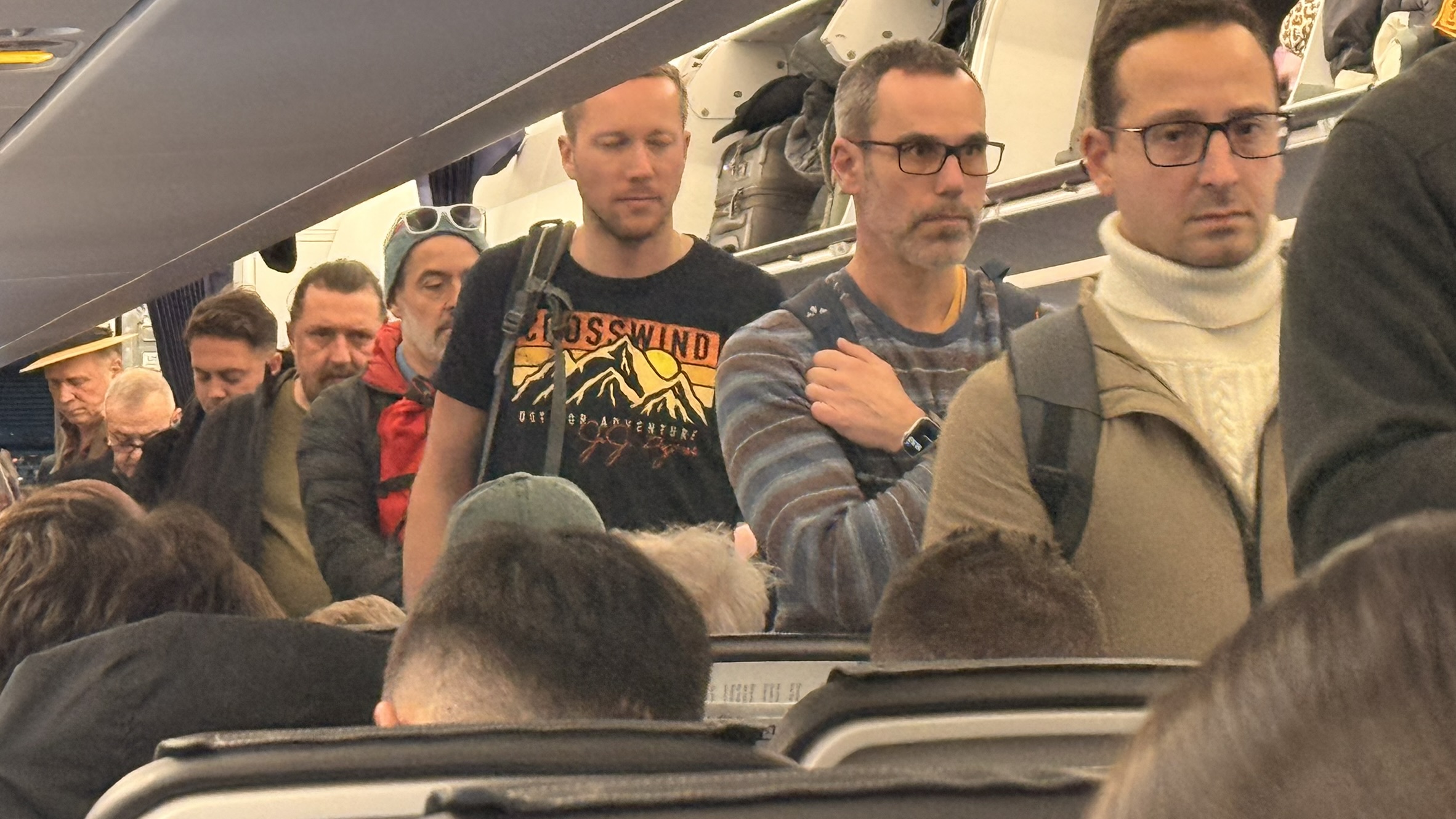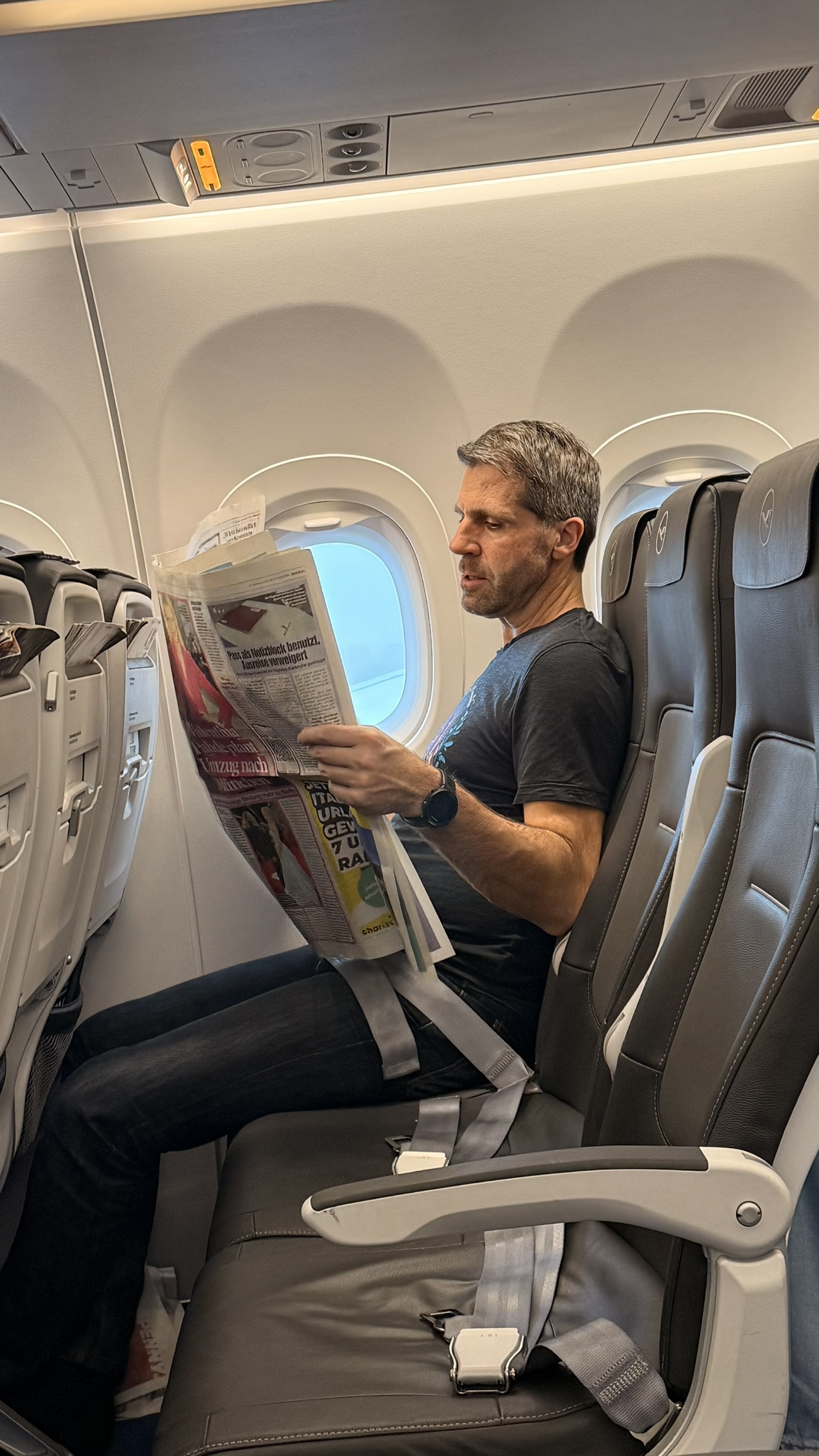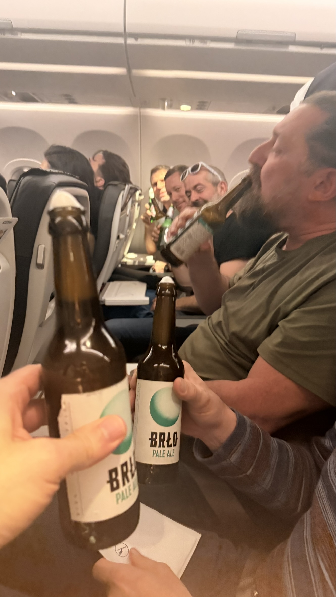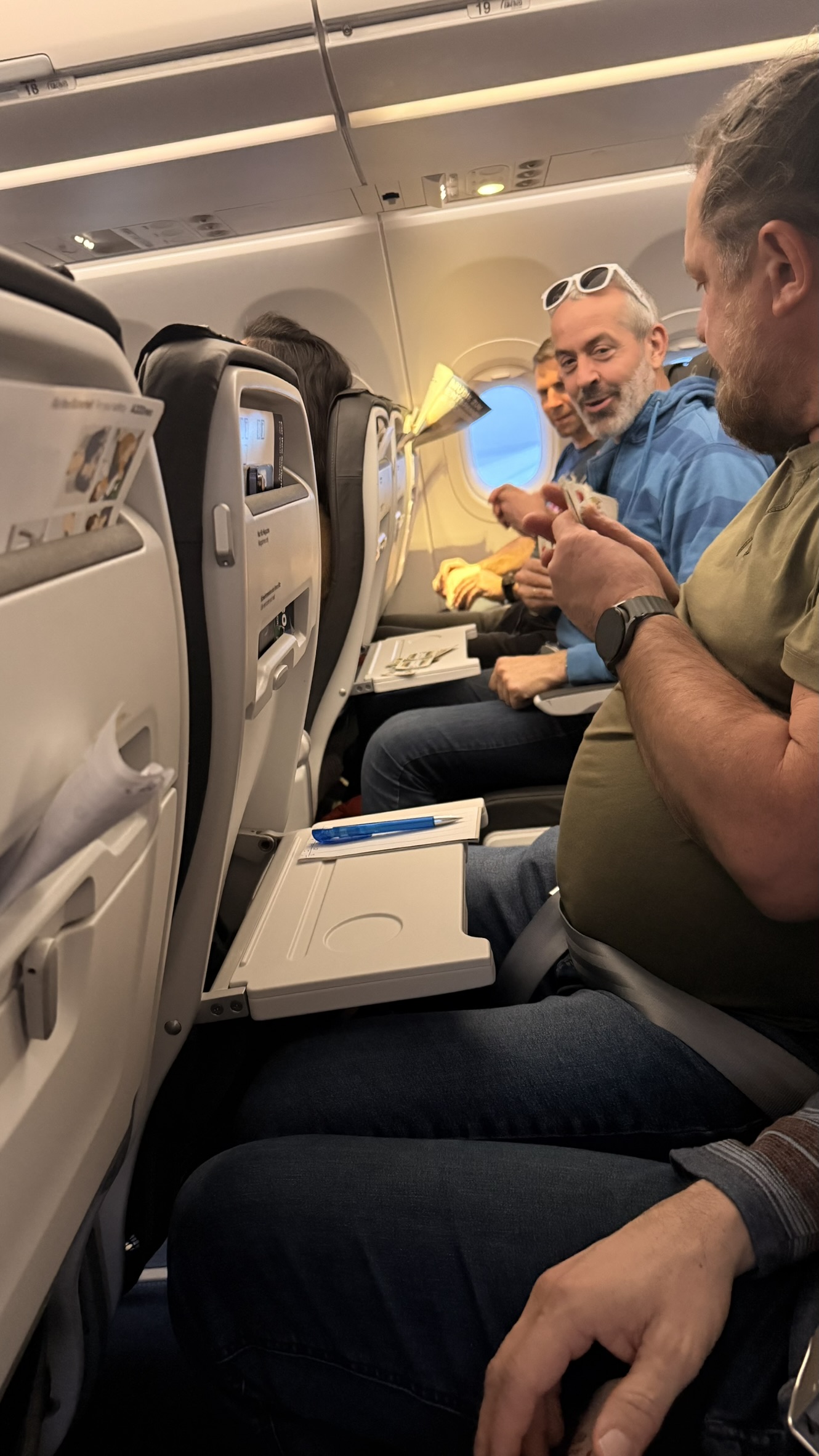 Die Reiseleitung reservierte die komplette Reihe 19 um sich während des Fluges dem Kartenspiel widmen zu können. Auch eine Runde Bier wurde von Lue spendiert um die durstigen Mäuler zu stopfen..