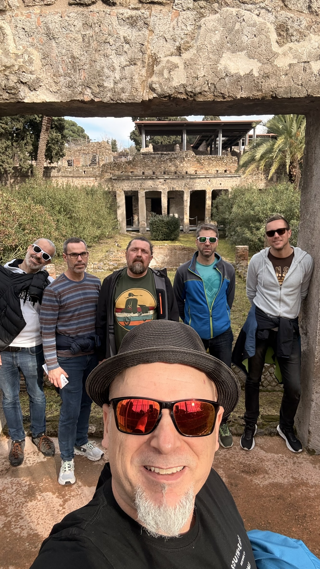 An der Haltestelle Pompei angekommen musste noch zum hinteren Eingang gewandert werden, Lue besorgte die Tickets und schon strawanzten die Trotteln durchs Amphitheater und die Straßen von Pompei. Lepo viel hier der Security negativ auf da er ermahnt wurde seine Tschick auszumachen, was er natürlich umgehend tat allerdings auf den antiken Vulkangestein… Der Security schlug die Hände über den Kopf zusammen und stammelte wirres Italienisches Englisch…