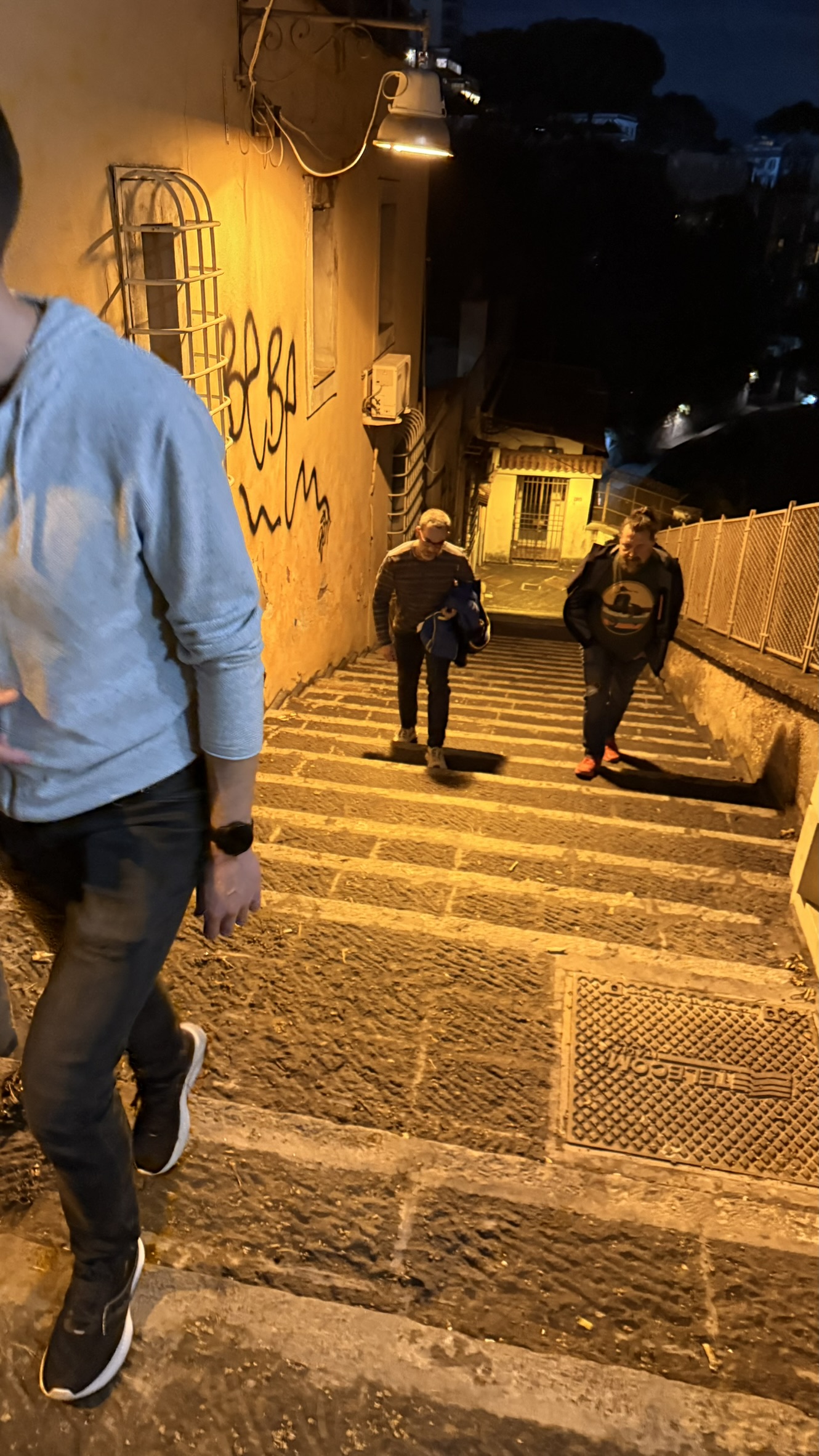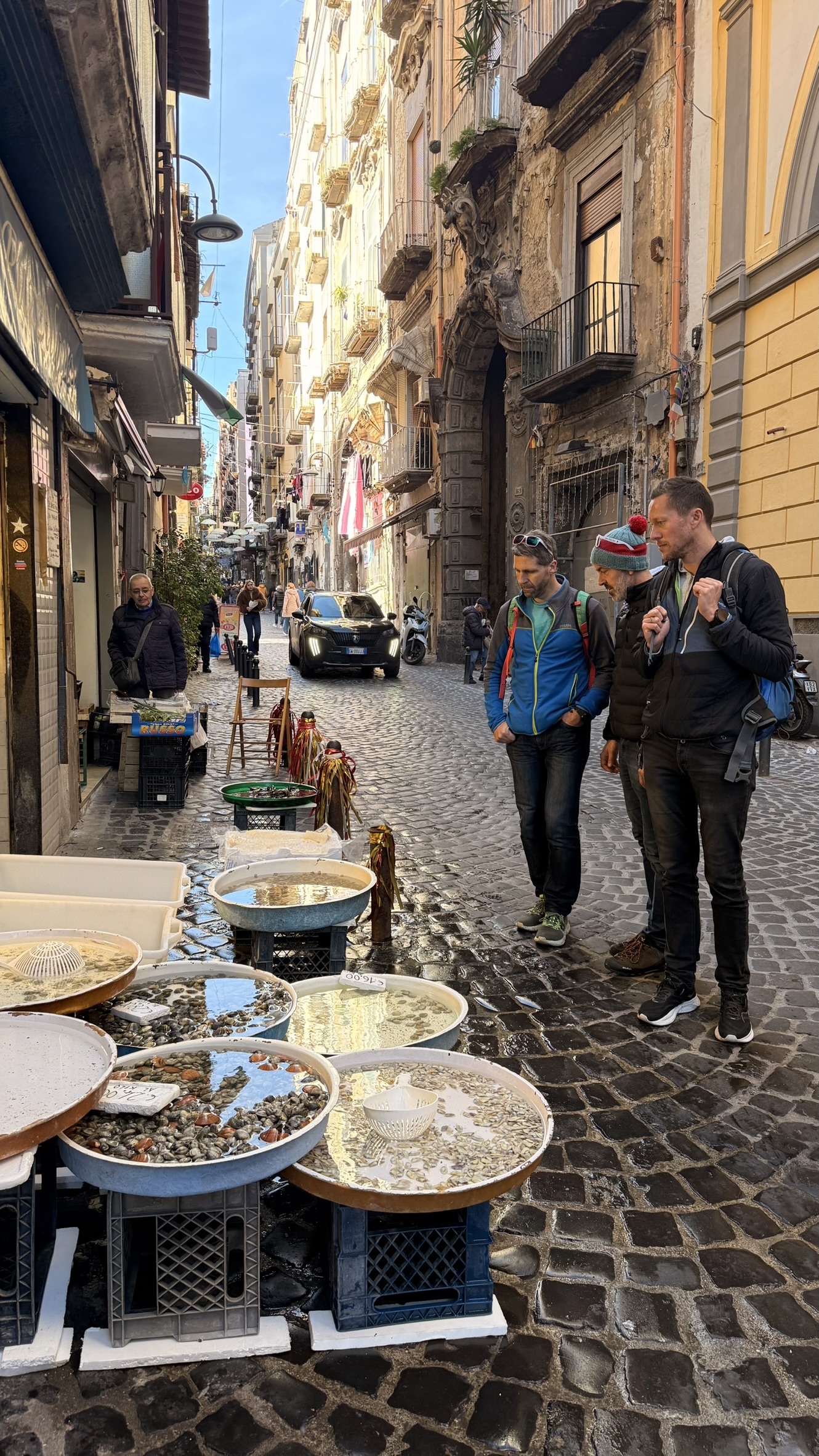 Anfangs waren die laufenden Trotteln noch guter Dinge, Kilometer für Kilometer wirkte der Gesichtsausdruck allerdings angestrengter.. Auch Mathse Knie wirkte Angestrengt. Schließlich liefen die Idioten über 10Km durch Neapel bevor es hieß Zusammenpacken und Abmarsch in den letzten Tag.