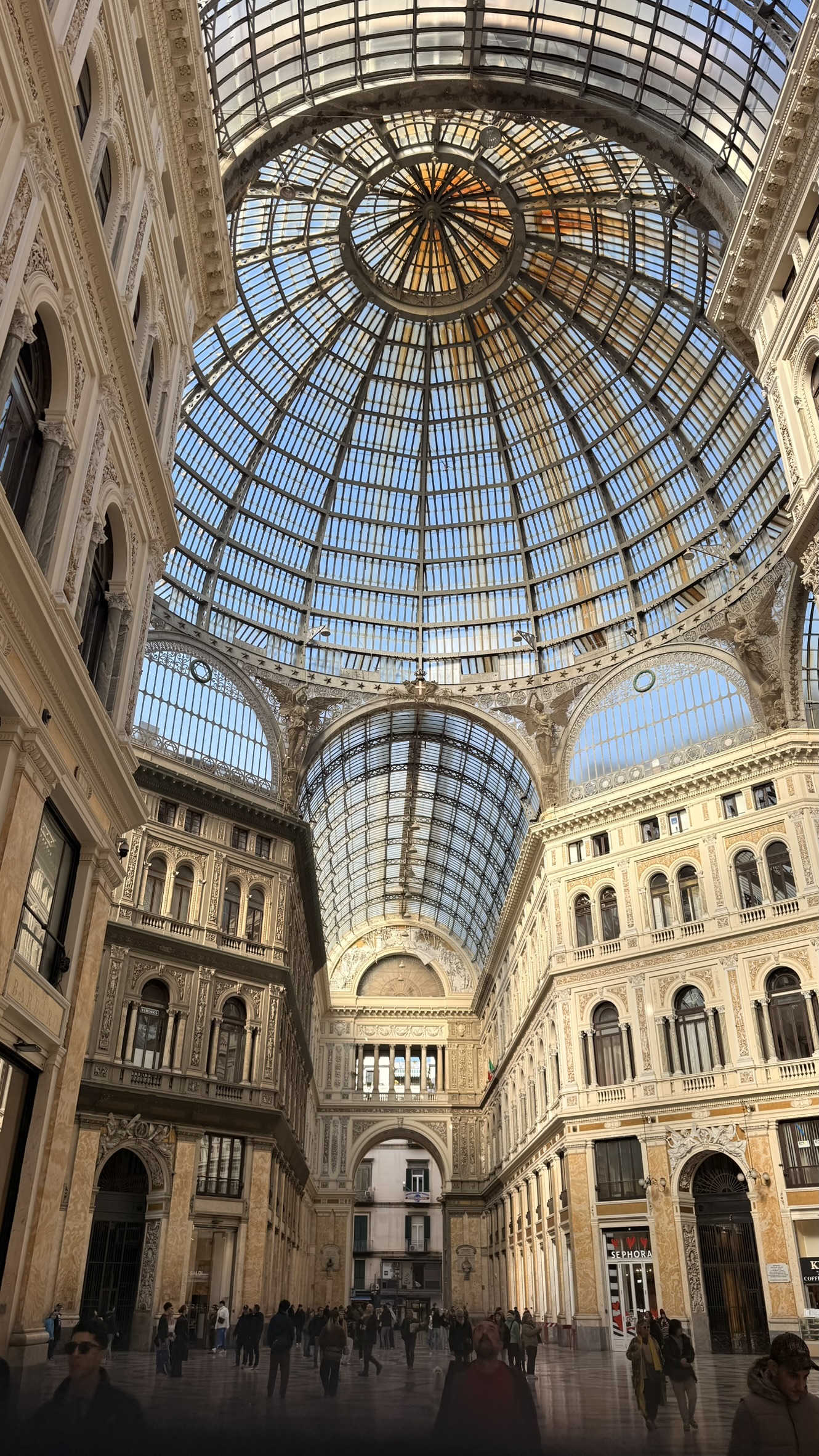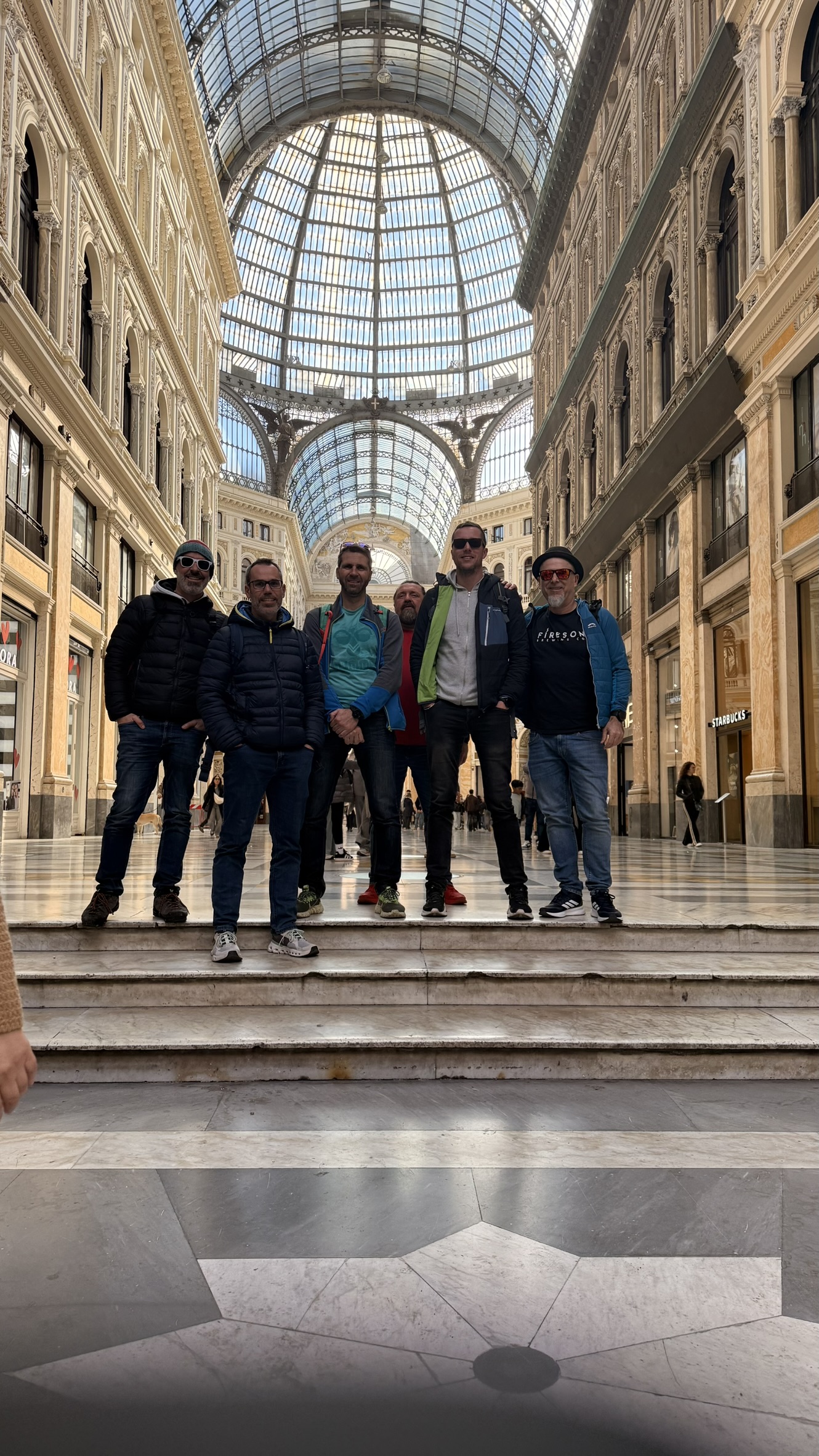 Nach dem ausgezeichneten Essen musste noch Kultur her und deswegen wurde Richtung Galleria Umberto I gewandert und auch zum Hauptplatz Piazza del Plebiscito. Danach musste wieder der ganze Weg zum Hauptbahnhof zurückgewandert werden, dabei verletzte sich auch Junseko der in ein Neapolitaisches Loch trat. 11,4Km wurde gewandert. Koffer holte seinen Lepo und ab ging es zum Flughafen wo die Trotteln bei gefühlten 60° 2 Stunden vor der Security warten mussten. Maths und Lue entwendeten noch Freibier in der Lounge und dann ging es ab in den Flieger Richtung München.
