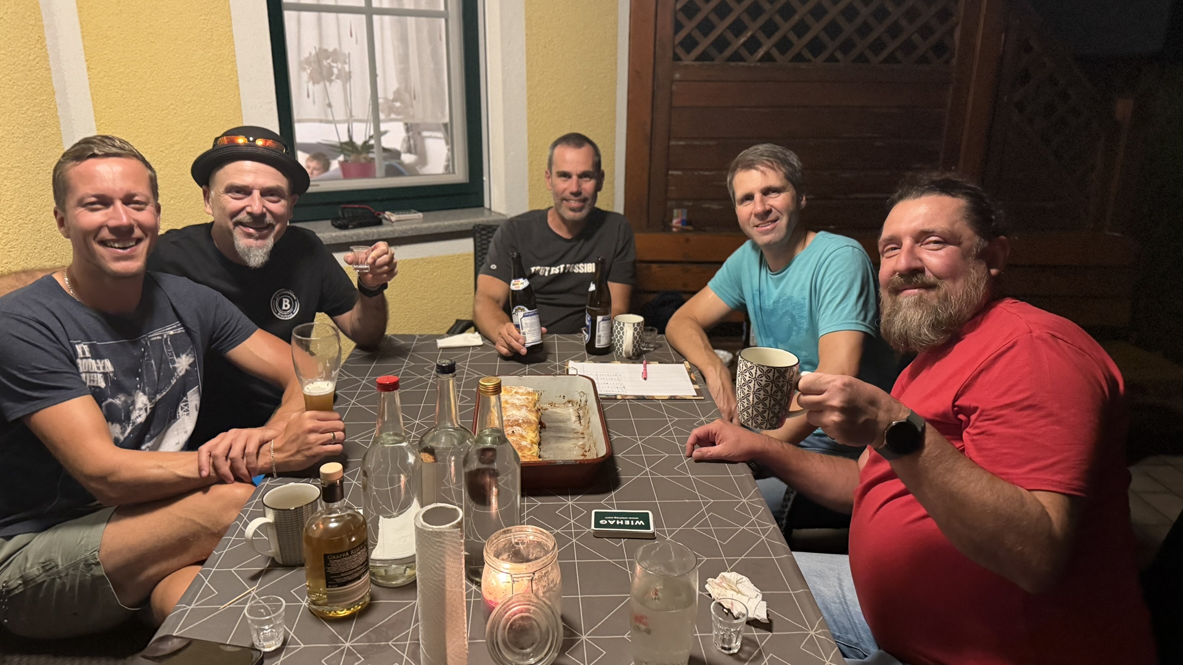 Nach dem Digestif konnte auch sogleich gekartlt werden, umso besser für unsere beiden Raucher da das Spiel ja draußen statt fand. Durchwachsen war die erste Runde, kein Hani auch nicht vom Hanl. Flott ging es durch die 2. Runde, einzig unterbrochen durch ständiges Wasser lassen des Mathse Bathses..